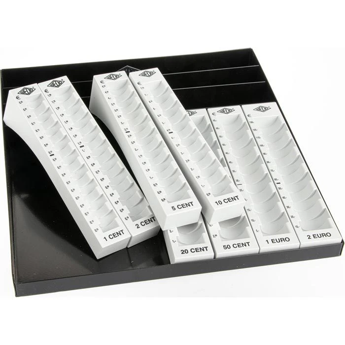• 8 Einzelmünzbehälter (von 1 Cent bis 2 Euro) aus Kunststoff