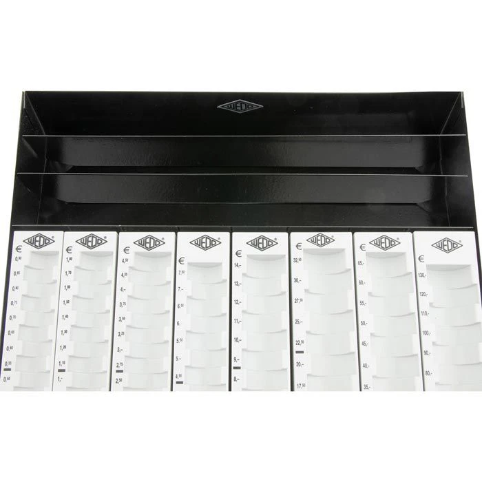 • Münzfächer sind einzeln herausnehmbar und mit Wertskala versehen
